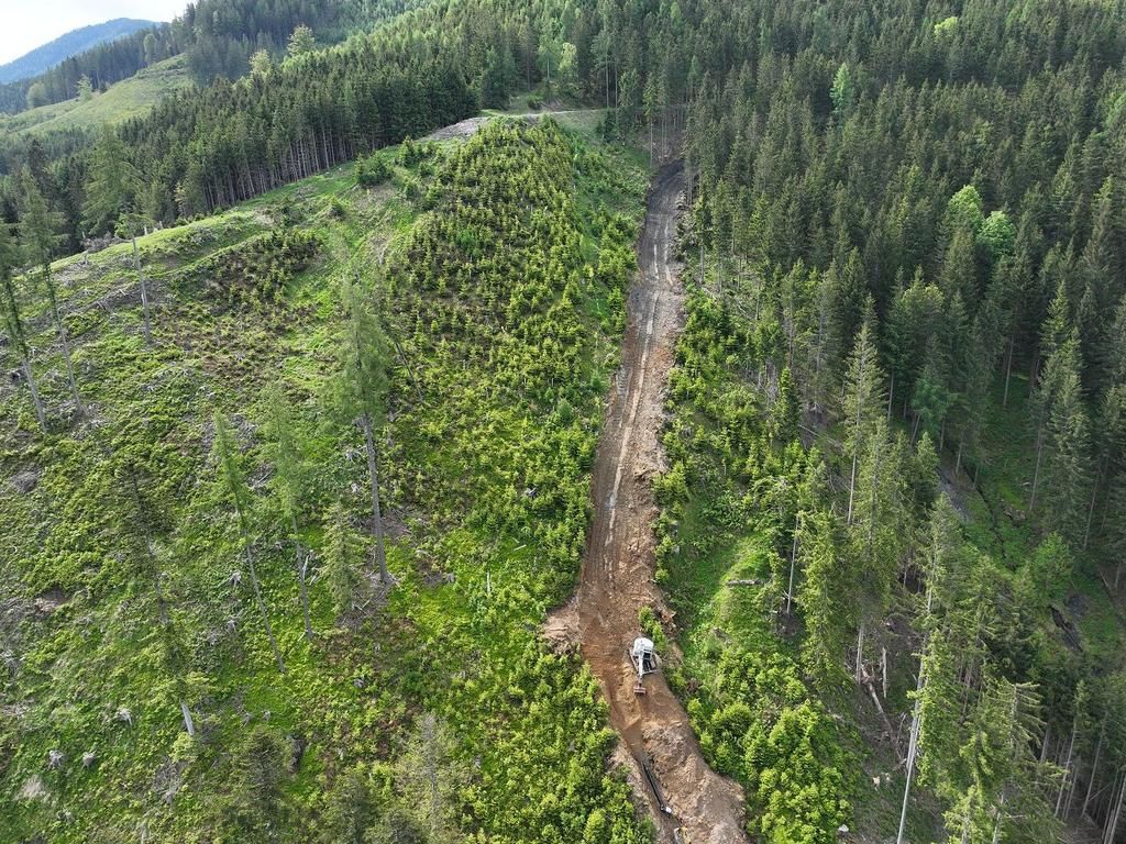 Errichtung der Druckrohrleitung über rund 1.570 lfm aus zug- und schubfesten Gussrohren DN300, bei Geländeneigungen bis zu 38°, inklusive Verlegung der Steuerkabel