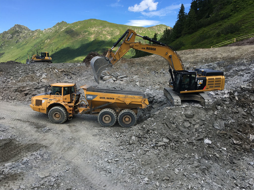 des Speichers Planneralm mit V- 50.000 m³. Die Bauarbeiten erfolgen grossteils durch GPS gesteuerte Baumaschinen der neuesten Generation wodurch eine effiziente Baudurchführung gewährleistet ist.
